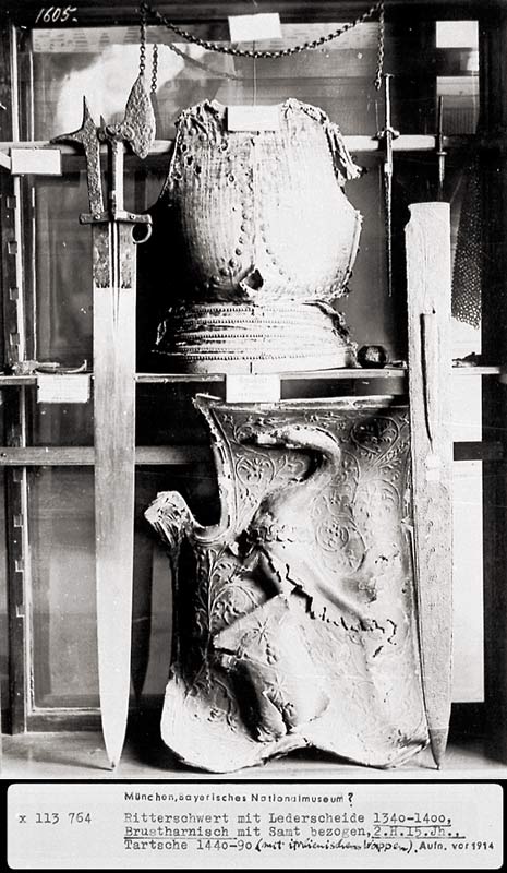 Some of you will now the attached photo quite well. It is part of what seems to be an almost never ending amount of original photos of Arms, Armour and artifacts from the Bayerisches and other museums which I keep finding on line. I believe thay were photographed in the early 20thC. The content of some of these old shots is amazing....I dont know where many of the items are today as I havent seen modern photos of most of the items.