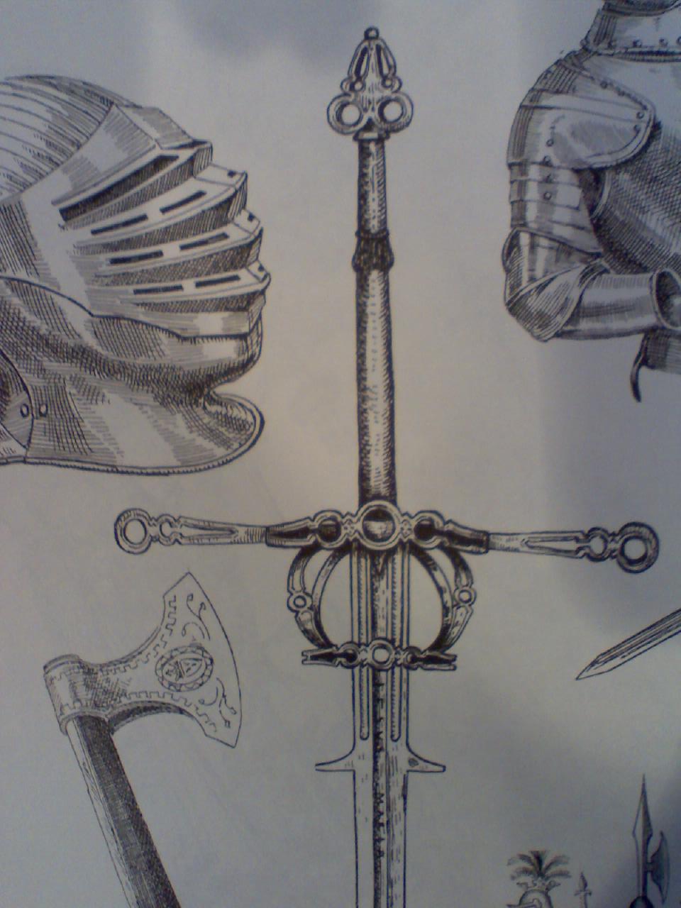 I was wondering where they find the originals that are sketched? I was hoping to find out more about this beautiful two-hander from the 16th century on page 92 of the book. I would love to have this replicated...