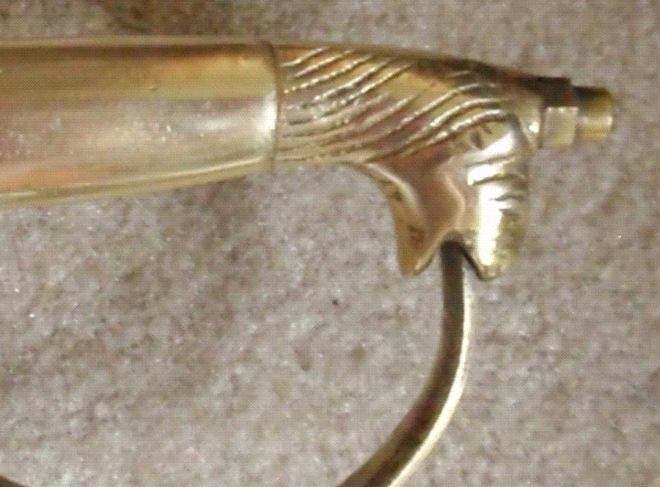 These have been around in various gift catalogs since I was a kid, they made short and long versions as well as similar daggers and also more traditional disk tulwar hilts. I have a short sword with the horse head some place and the full size tulwar and both are secured with the brass nut. The horse heads came with a blue velvet scabbard and the tulwar hilts with a red velvet covered scabbard. Got 'em out of a catalog as a kid. Reproduction tourist stuff all the way.