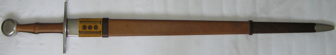 Both swords come with a wooden grip wrapped in brown leather. The scabbard of the hand-and-a-half sword is made of wood and covered with brown leather and has a steel locket and chape. The scabbard of the Norman sword is made of resin and is also covered with brown leather and also has a steel locket and chape.