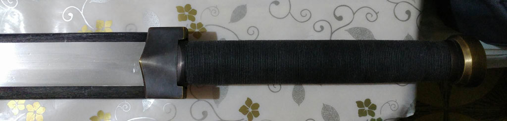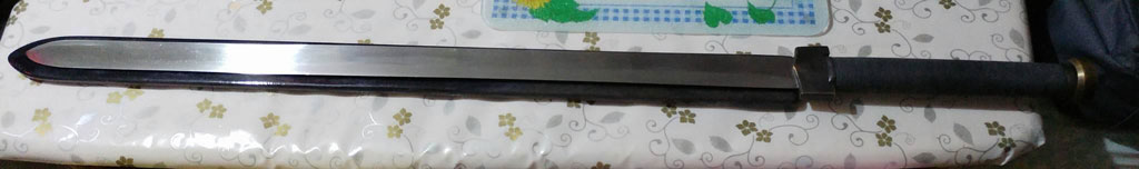 A student would like to sell this Longship Armoury custom made enlarged Tang Dao with false edge tip, Han Jian style fittings, at 1120 USD before shipping.