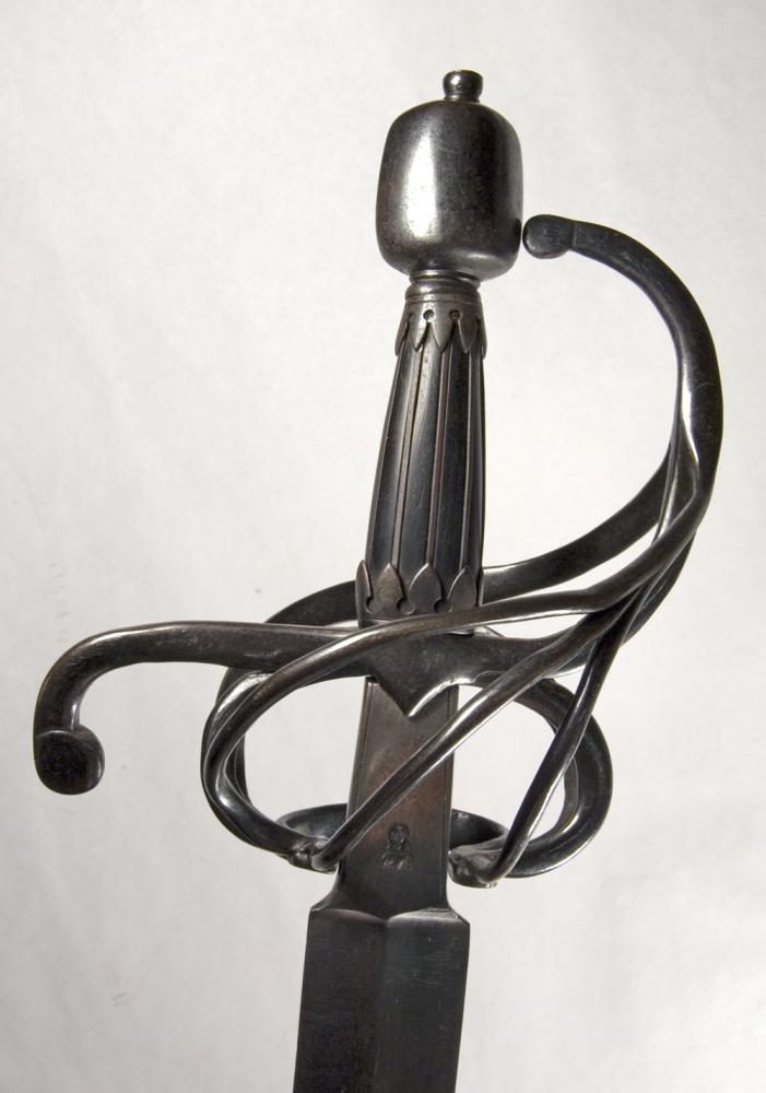 The problems I see are, I think, well within your ability to fix. The edges of the bars need to be a bit more rounded and thinned. I'd slope the shoulders of the blade. The escussion should be thinned so that it slopes toward the blade. I'd redo the grip, shortening it by about 1" (notice that in every case below the knucklebow terminus is level with either the lower part or middle of the pommel). Many of the pommels on this type are of fat lenticular section rather than round, you could grind or file this one without too much trouble but I think round section is within the realm of possibility. I'd blue the hilt furniture because this appears to have been the typical original finish of these field swords. I'll be bluing my A&A eventually.
