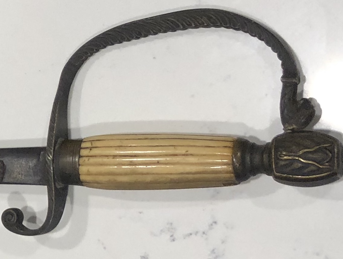 William Horstmann and likely the Philadelphia address. A nice, yet diminutive sword from the 1840s-1850s. Likely sold as a dress sword for a militia officer. I am not at my desk but the pommel turns up in one book or another. On one side of the blade should be an imprint of a crowned king, indicating the blade was from the Weyersburg family. This sword was from the decade, or following association with Frederick Widmann and Horstmann bought the other shop (lock, stock and barrel) when Widmann died. Both had serious connections with Germany and Horstmann came to the US from the weaving/tapestry background and guild.