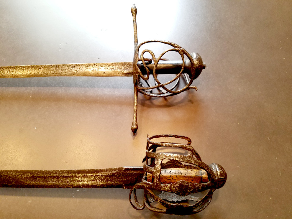 I have an antique Continental (probably German) basket-hilted backsword that some have described as a dussack or tessak. Likely dates to the late 1500s-early 1600s. Top in the attached image.