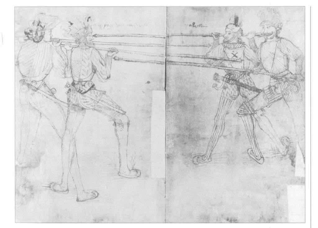 "But the skilled should be otherwise armoured, especially in single combat; in this place or way of fighting we say that it is more inconvenient for someone to be too weighed down by arms than if he would leave some limbs uncovered, such as the back parts, or that they are at least lightly armoured. For he who knows how to govern himself in the way we have already prescribed can be very easily protected, to keep him from being caught by the back part, or even by the sides, so that he is not only lightly armoured on all parts, and strongly where needed."
