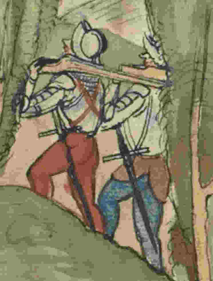 Finally, about mail, it was worn far into the 16th century. Generally I think a lot of cavalry began to shed full plate as early as the 1470s. The images from the Hausbuch are emblematic of that. I don't think the lancers in that book were wearing arm harnesses, the sleeves on their tunics could not accommodate the couters with sleeves that tight. They might be wearing back plates, it is impossible to tell with them wearing those tunics. After Pavia the lightening trend was only re-enforced. By the 1540s I'm seeing people in three quarter or half plate suits. I've seen images of cavalry from the 1540s and 50s wearing mail sleeves with a full plate cuirass and gauntlets, bourgonet or even an armet and by now carrying pistols and a war hammer.