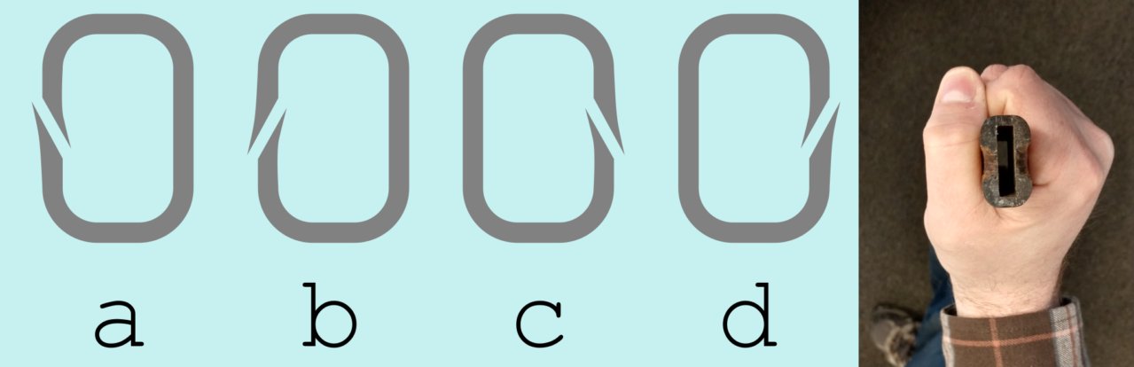 I'm preparing to make some leather grips for the first time, and I want to make sure I get the seam orientation right. The sword I'm working on now is actually a saber, with no backstrap. From Peter Johnsson's thread over on bladeforums, I think the correct way is either 'a' or 'd'.