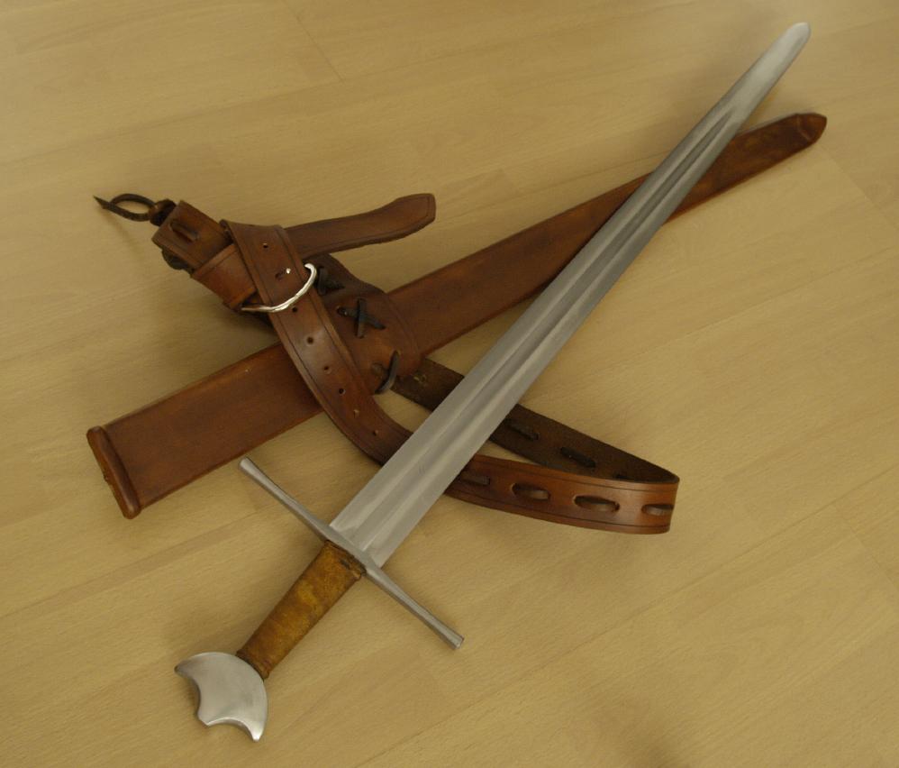 I wanted it with a light brown hilt and a matching scabbard and belt. It completes my collection down to the "lower" Oakeshott numbers and is my first one-hander.