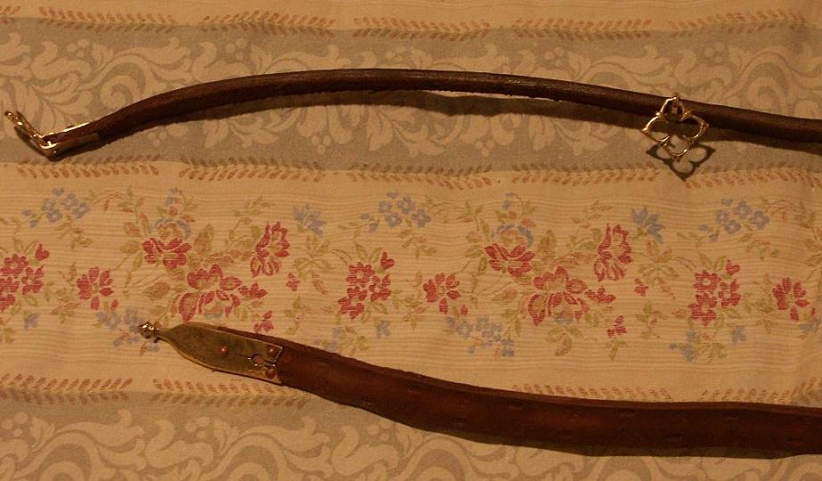 brown wood handles and brown leather scabbard, and a belt from Mr Tod in brown leather with gilt buckle, purse hanger and finial. all is new, in the same condition i have received it, also i think that my eating set version is out of production as now mr tod offer only the bone hanlded version. i'm selling it just because i have ordered an archery equipment from MR.Tod and i need money, but both items are absolutely fantastic. asking price 130 euros expedition included (add the paypal fees) if you need photos ask me . you can contact me also at gabrielebecattini77@hotmail.com.