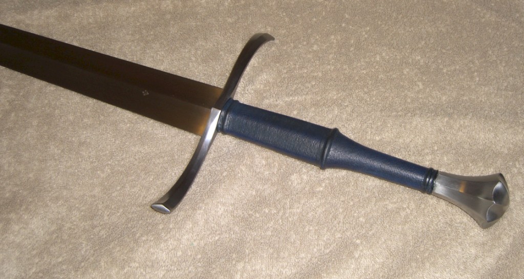 Hasn't been used to cut anything other than air and has spent its life in an air-conditioned house. I've periodically waxed all exposed metal with Albion-recommended Trewax. The leather grip was ordered in a custom dark blue color. The grip remains tight and firm just as it left the Albion workshope. Basically, the sword is in like-new condition.