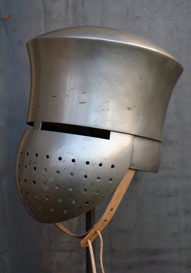 For sale early great helm made by the polish blacksmith Patryk Nieczarowski.