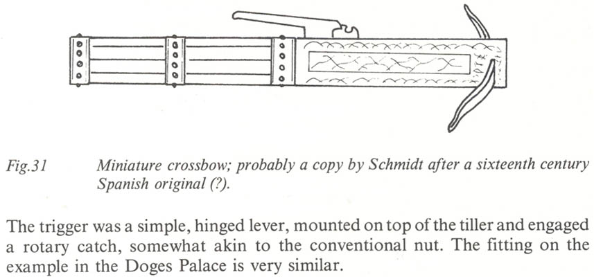 The attached pictures are from the book "A Guide to the Crossbow by W.F. Patterson", pages 105 to 107 that deal with the Balestrino (miniature crossbows).