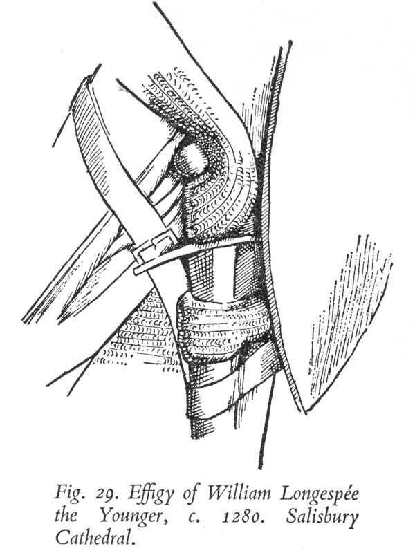 We have spotlights articles on both types that are worth checking out. Type XIV's saw most of their service between c. 1275 and circa 1340. So that could have put them in service during the Ninth Crusade or the falls of Tripoli or Acre. As for Type XV's, see the image below from an effigy created around 1280. The decedent actually died on Crusade; this effigy was made later. I saw it last year when I was at Salisbury Cathedral. Very cool. So they're possible, too.