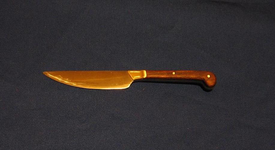 I got one of the eating knife kits from The English Cutler http://www.todsstuff.co.uk/theenglishcutler/k....htm#thumb to build alongside Tod's recent contest (thanks for the inspiration and materials, Tod!). I figured that would be a good way to impose a deadline on the work so it wouldn't sit in a drawer for months. The result is below. This was a very enjoyable project and I'm pleased with the results. It's given me confidence and skills to take on some other languishing knife projects. With the notable exception of the pins and thread, everything here is from the kit--blade, cherrywood (yes, I dyed cherrywood,) leather for internal and external scabbard and leather thong. I didn't use the kit's brass rod for pins because I wanted a specific and somewhat modern look of black and steel.