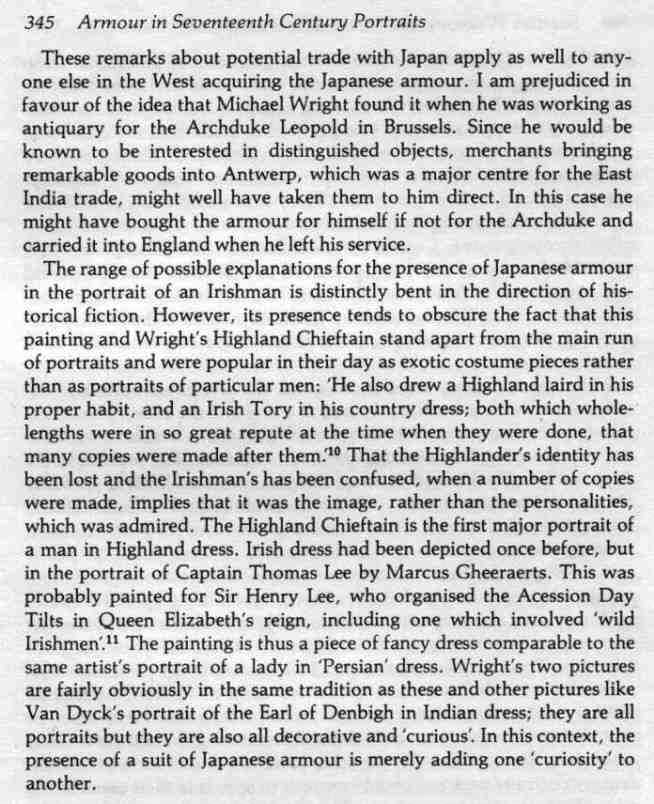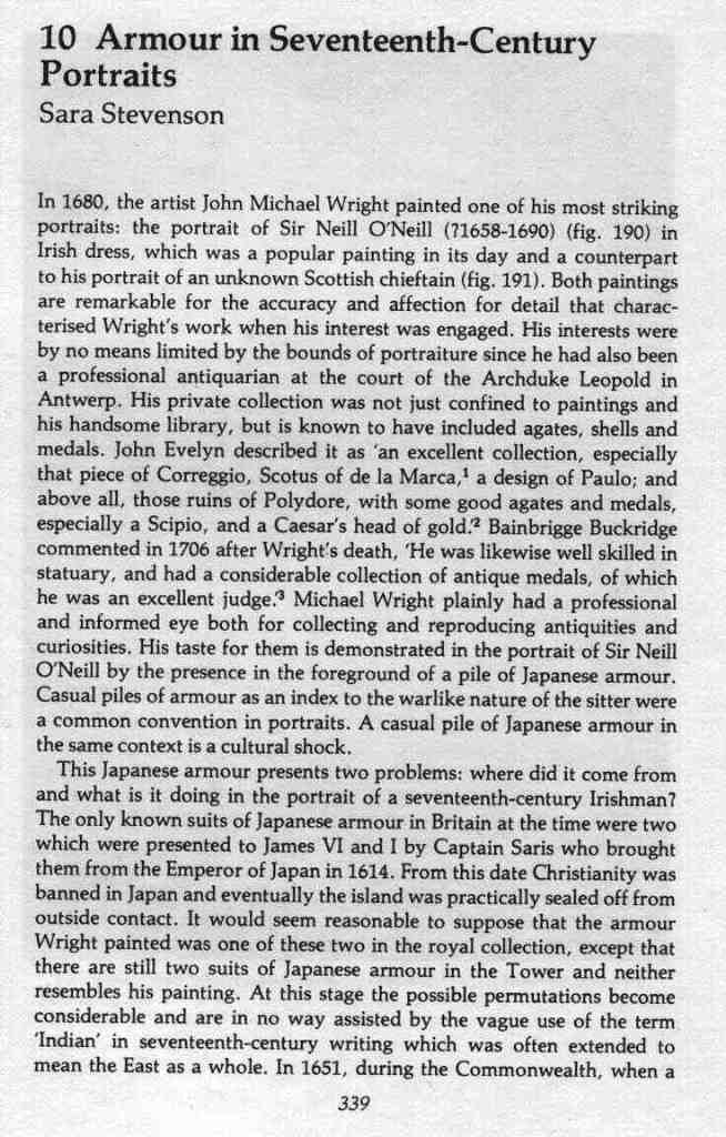 In 1680 the artist John Michael Wright painted the portrait of Sir Neill O'Neill ( ? 1658-1690 ) in Irish dress...in the foreground a pile of Japanese armour?