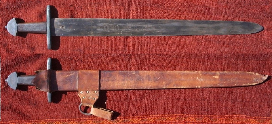 So much of my immediate reason for joining have been answered, but I thought some folks might still like to see the sword anyway. According to Laurie, Kirby made this pattern of sword in the early 1970s, fairly early in his swordmaking career, so its been kicking around for awhile. The etched motto was added at some point after it left Kirby's hands, and the scabbard is original.