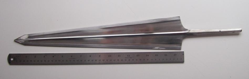 Here are some early pics of the blade where you can see the strong central rib that extends into the tang at full thickness giving it maximum strenght even if it is narrow.