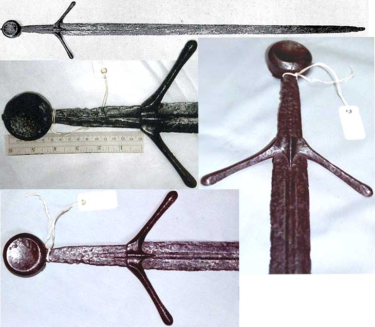 | The general idea came from this style of sword. At no point were we trying to make that sword, but the general shape appealed to me. Went with another scottish pommel instead of the hollowed wheel. I had this sword in mind while making the parts for my piece, but I actually didnt find a picture untill I was done. So I am certainly going to go back and do another one that is closer to the original piece.] |