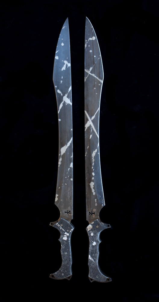 hello everyone im selling my zombie tools phalanx twin swords asking 550 for both shipped or 275 each shipped but id really like to keep them together these are the first two phalanx swords ever made by zombie tools they are perfectly balanced and razor sharp this is the official description if u have any questions just email me thank you
