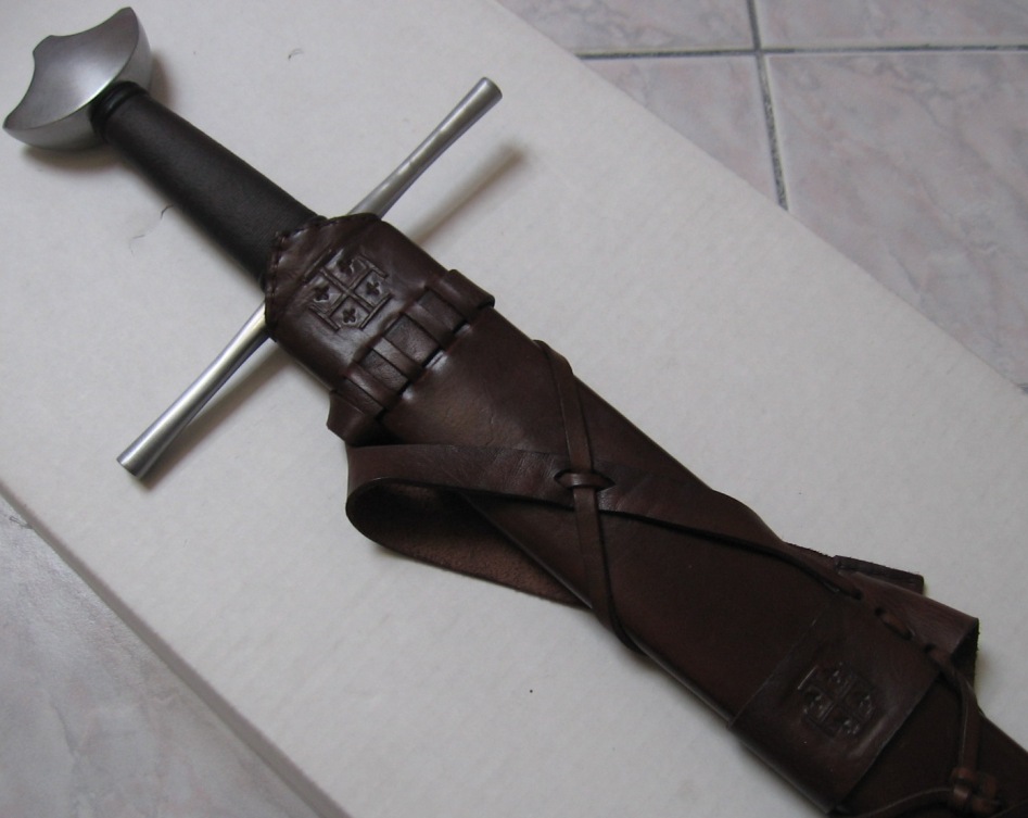 It also comes with custom made scabbard in brown leather which has two jerusalem crosses tooled on it. The scabbard was made by Tod's stuff a couple of months ago.