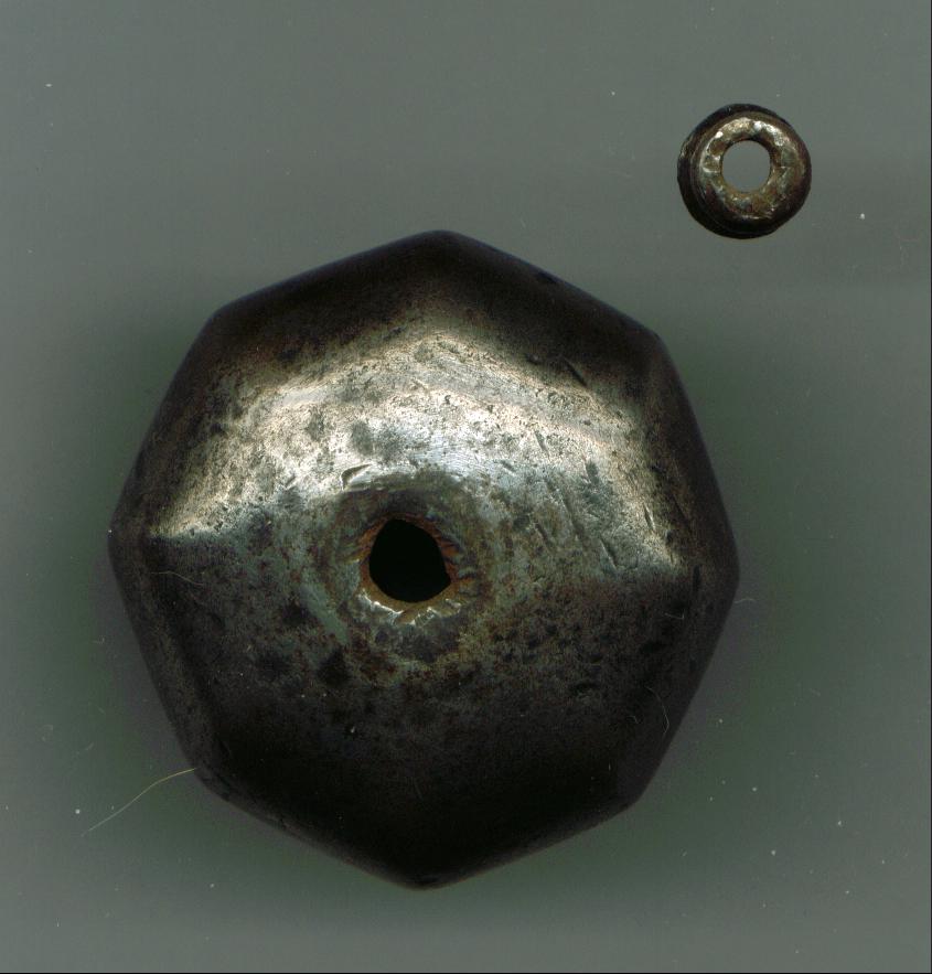 Here are a couple of pics of a pommel and button from a 16th c. Italian longsword that I did some work on awhile back. It was a very nice piece, and worth a bit of money on the collector's market. Proof positive, as if any more was needed, that the vast, vast majority of the craftsmen of the time cared NOTHING about symmetry or what WE call 'perfection'! They were much happier craftsmen, I'll wager, and had far higher productivity. I must confess that I am a 'recovering' perfectionist, and can't recover fast enough! The more I 'recover', the more real my work looks. Wink I have nothing against passing the savings in time (=money!) on to my clients.
