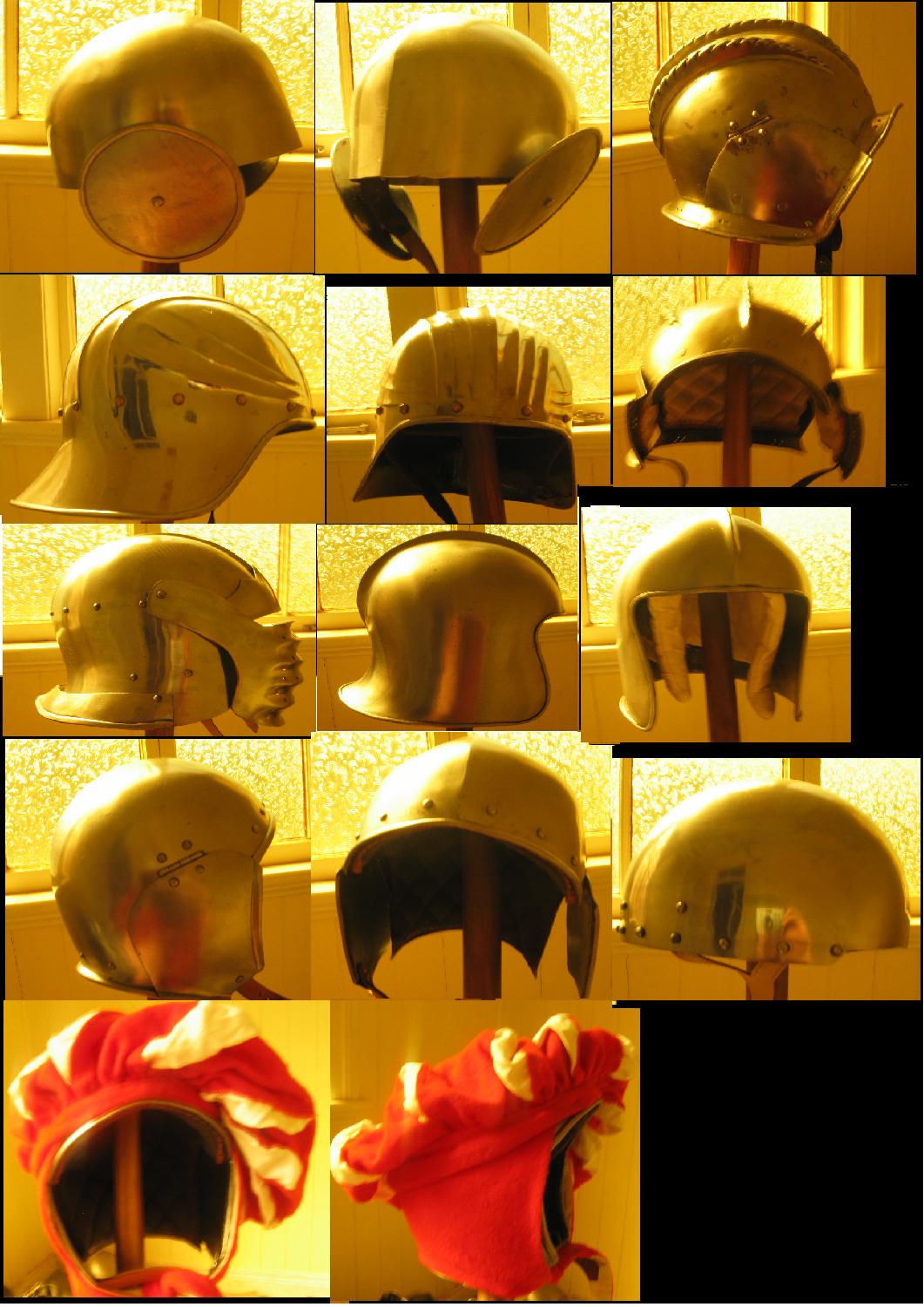 If you like any I can tell you there makers, two of whom made the Maximilian half armours that go with three of the helmets.(Also, half these helmets ar supposed to be worn under hats or covered in cloth.)