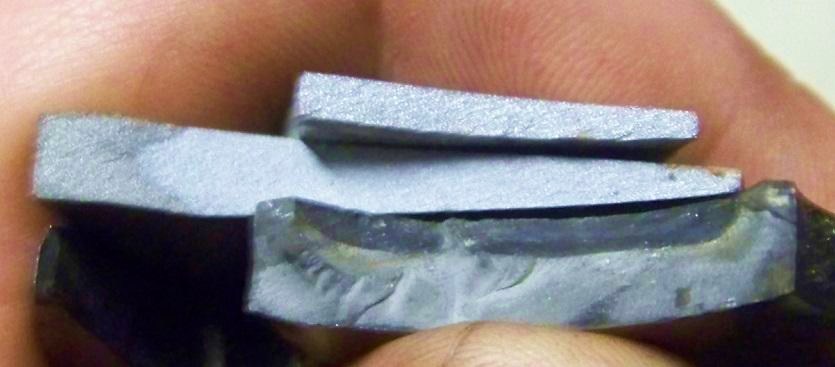 Some gentlemen on another forum (bladesmithing) are leaning towards the same thing that has been suggested here, that the grain structure of the break in a properly heat treated sword reflects light differently than one with improper heat treatment.