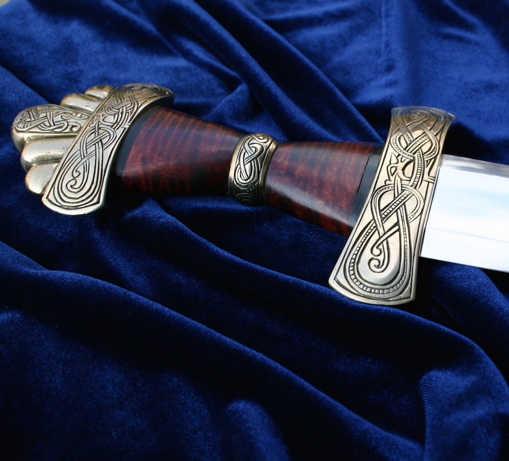 I elaborated on the existing details to produce the bronze guard and pommel parts,as well as a grip ring on the stained and oiled Maple.