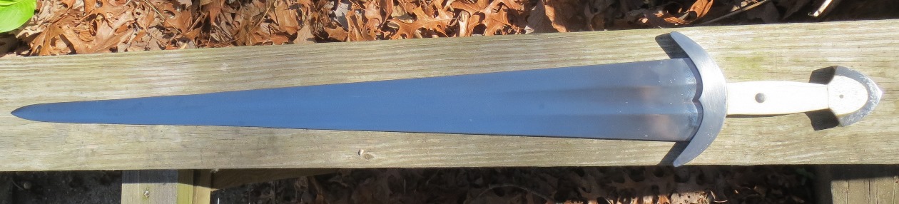 Sword is 37" in length with a 30.5" blade that is a wide 3.125" at the guard. CoG is 4.5". Bone grip - white on one side and a mix of gray/white and brown/white on the other side.