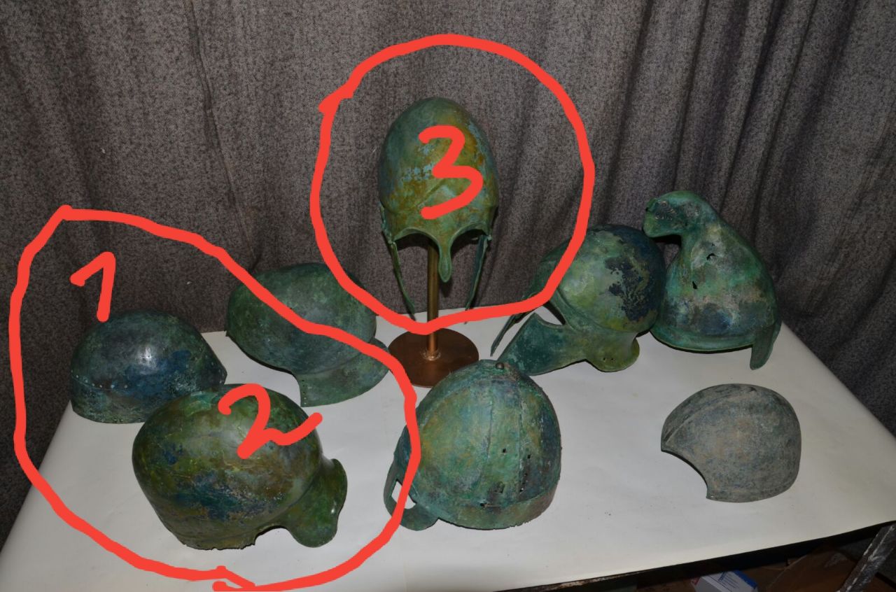 Please find attached pictures of helmets, awaiting for return to their legitimate owner. Helmets marked 1 and 2 are now offered at Timeline. Be careful.