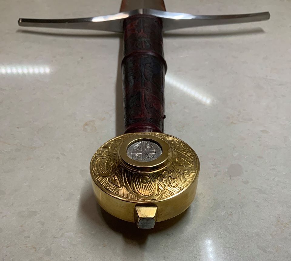 Albion Agincourt with custom grip, engraved and gilded pommel with silver pommel inserts by Josh Davis Reproductions, scabbard confirmed to be by VA sonny suttles. Looking for $1300 shipped anywhere in the conus, please allow for delays with shipping due to the virus situation, probably wont impact but should be fine