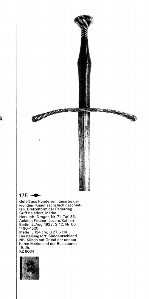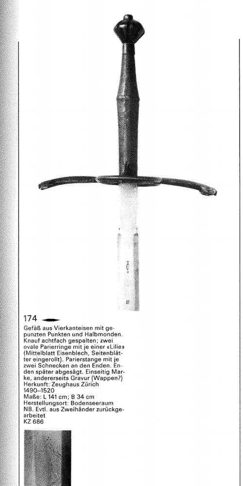 Picture as example of a sword with siderings dated to late 15th century in Swiss landesmuseum..