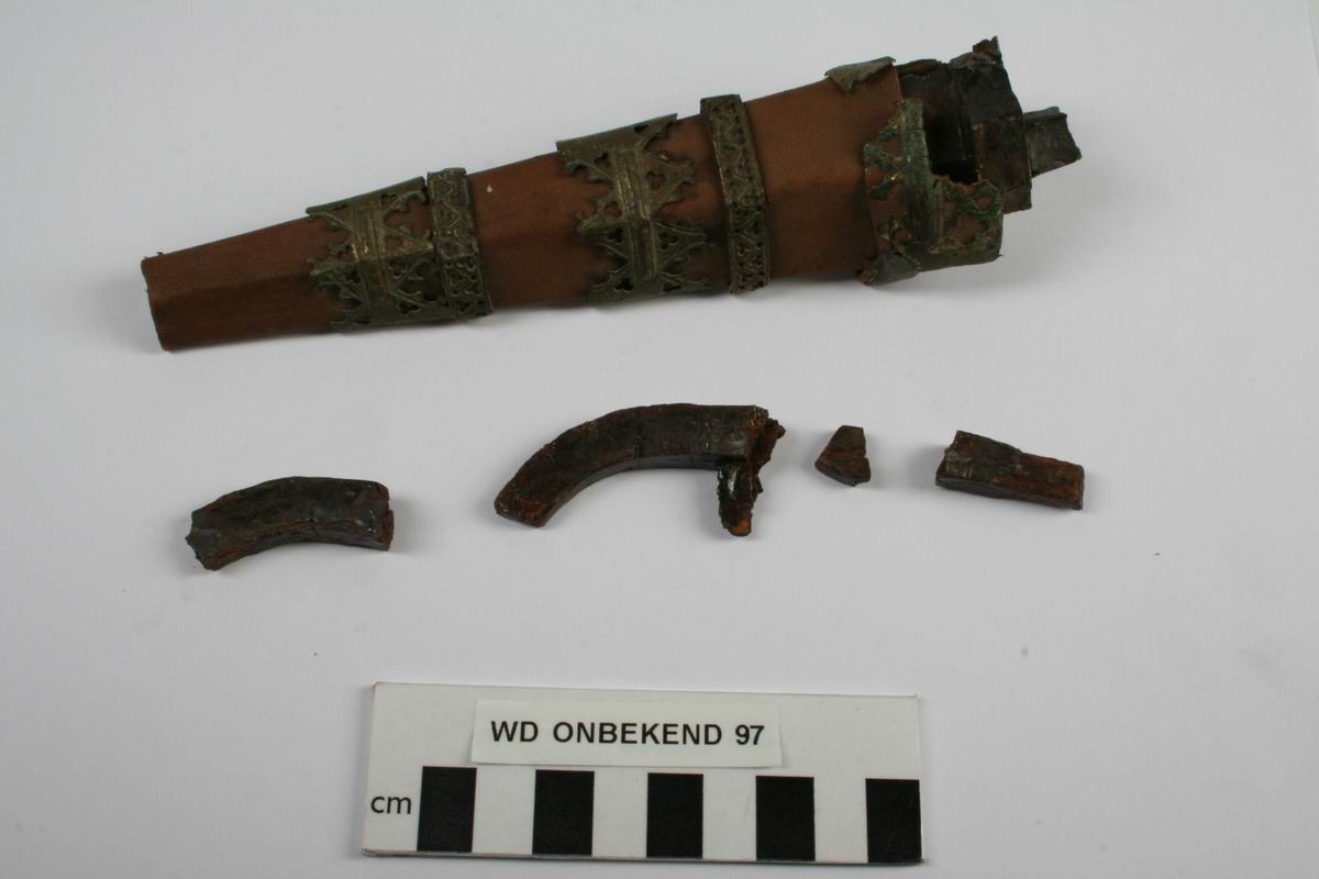 Here's another one. Found during excavations in 2002 of the Manour of the Lords of Arkel and the Grote School on the Krijtstraat in Gorinchem. Both the dagger form Leiden and this one seem to have been found in a 14th century archeological context. Interestingly this one has a tinned crossguard. It was found point down as if it had been driven into the ground and left there. There was no sign of a pommel.