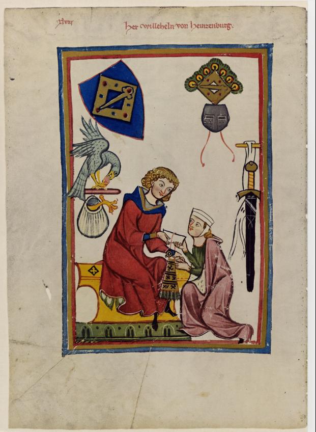 Click through the links on the left side of that page to see amazing details of 13th century German martial culture, including arms, armour, combat, costume, etc. I was particularly taken with the many depictions of what seems to have been a common way to store/display a sword and scabbard (see first image below). Just in case some of you medieval sword enthusiasts were wondering about historically appropriate display....