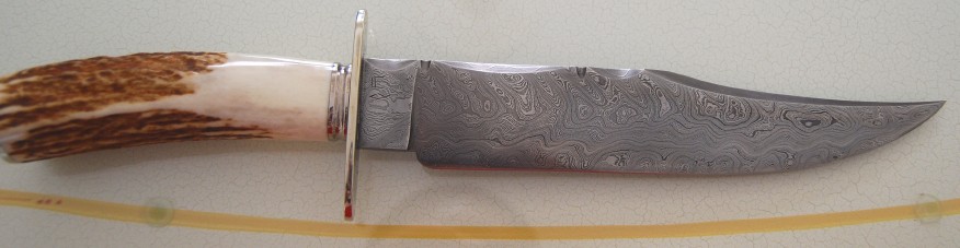 Here again for sale is a damascus clip point bowie knife that I picked up at the Atlanta Blade Show. I had trouble posting pics last time and decided to remove the item till my computer settled and now here are pics. This piece is beautiful. Vince told me that he no longer makes bowies, so this would be a collector's peice of sorts from a great smith. PM me if you are interested. I am asking $800 for the bowie. It comes with its own leather protective sheath. I can do paypal or check. Thanks Attachment: 64.6 KB