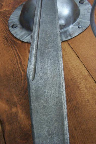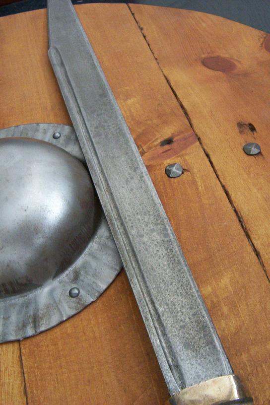 Antiqued Paul Binn 24" scramaseax, and a matching shield. Great for sparring, or a mean germanic-kit..