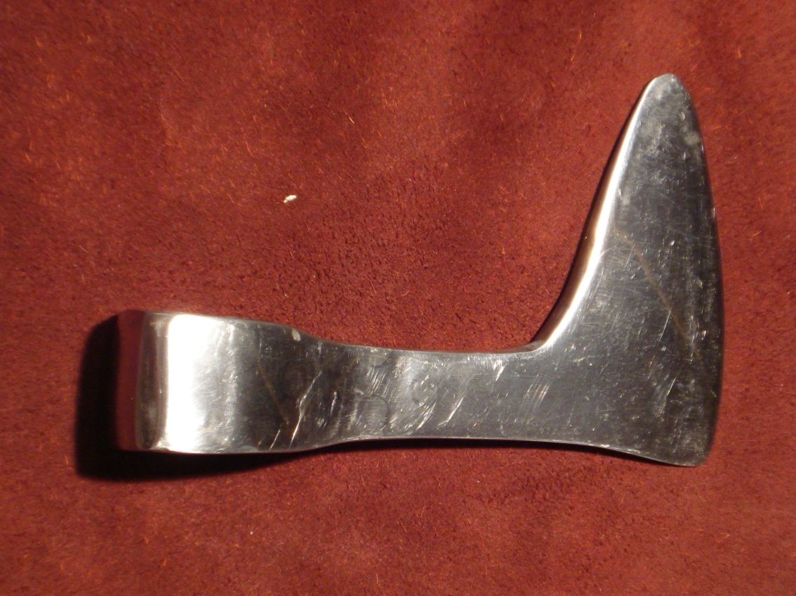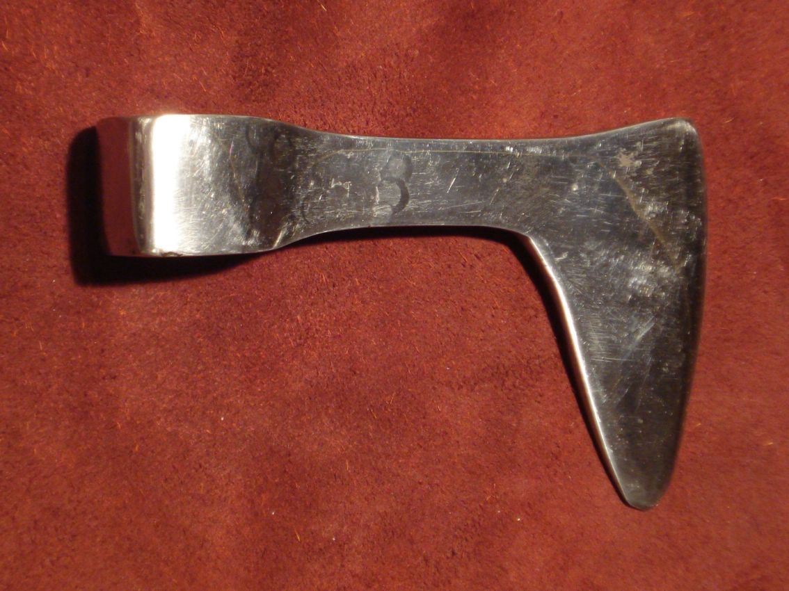 I've got for sale an axe replica from X/XI century. Dimensions: blade length 8 cm ,width from helve 13 cm, weight 220 g. It's welded from two pieces of metal,decently grinded and highly polished. As You can see on photos it has some scratches and grazes, but no serious damage.. Orginal axe was found near Cracow (Poland) in old fortified town once burned by Bohemians.