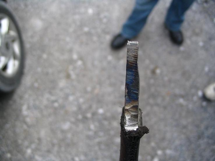 3/4 inches thick) on a pallet that was cross grain to my cut. Oh, the board cut but the Grosse Messer split in two about 2 inches inside the hilt from the blade.