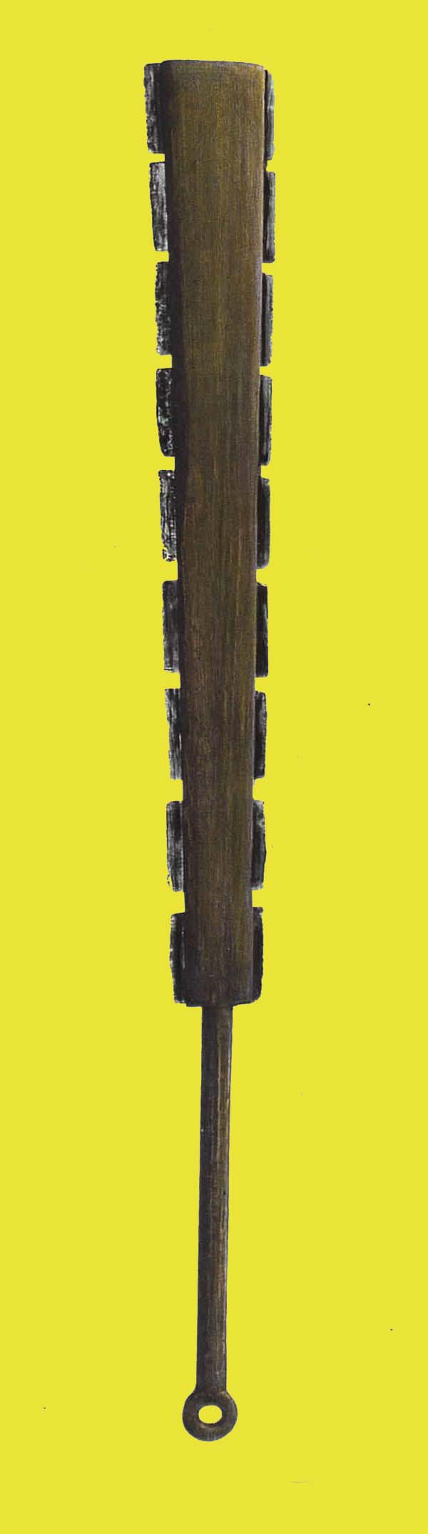 There was also a smaller version of the Macuáhuitl, called a Macuahuilzoctli: this one were about 50 cm. long and had only 3 to 5 blades per side. It can be compared to a short sword.