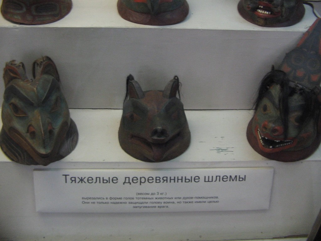 Pictures: Various Aleut wooden helmets; Aleut warrior dressed for battle. Historical museum in Russia. Photo courtesy: tforum.zokov.net