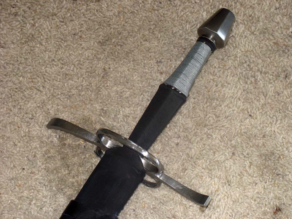 well, after long last, and some wonderful help from the illustrious Sean Flynt, my reworking of the 15th Century Longsword offered by Windlass Steelcrafts is nearly complete. there is much more I would like to do to it, but am unable to at this time. the pictures are attatched, so please, don't spare me criticism, as thi is my first. I did everything, except make the scabbard chape. I got that off of the scabbard for my strider's ranger sword. I didn't make the buckle for the sword's belt either, which came off the same scabbard, but I did mae everything else. again. constructive criticism, please