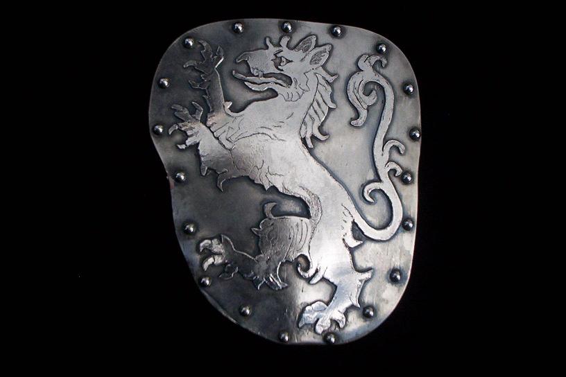 They were taken from a 16th century shield, or so I was told. I carved them from wax. They are copper with silver plating. I am re-doing them so hopefully they will look more symmetrical.