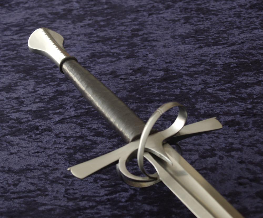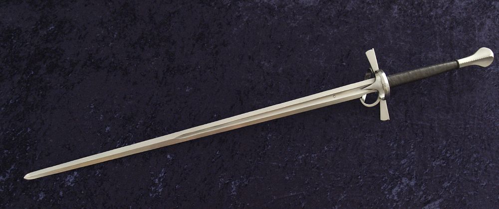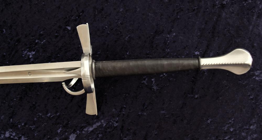 I ordered the sword sharp, but it is not as sharp as the Albions, more like a practice sword, but too dangerous for that. The blade is surprisingly flexible, and the sword has a weight distribution much towards the pommel. In fact it is moved best as a one-hander, despite its long grip.