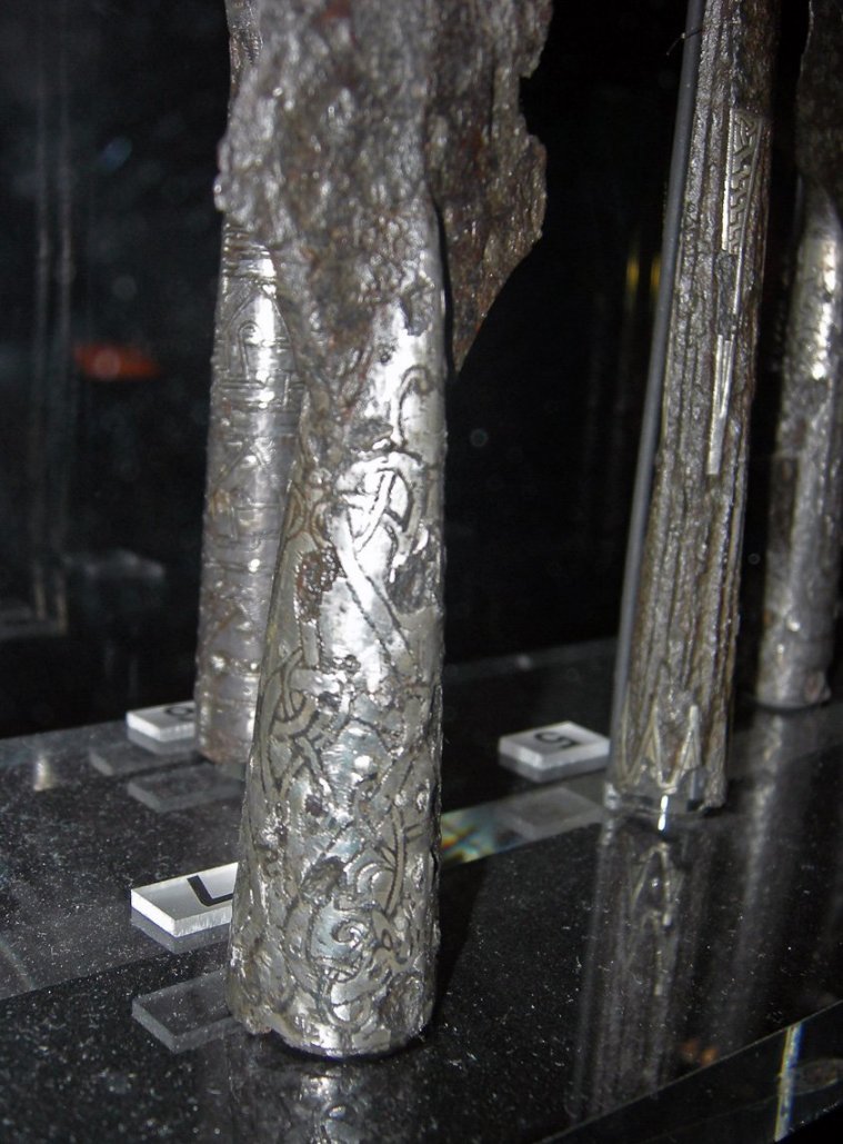 Close-up of a viking sword.