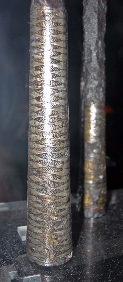 Some antique swords had wire inlays on gold, copper, silver, bronze or some combination on the hilt and/or blade. I've seen some for sale by antiques dealer, and I'm often struck by how shiny the wire is compared to the iron/steel of the sword. I know gold doesn't tarnish/oxidize much, but silver and copper do. I'm sure the conservation process applied would remove active oxidization (like verdigris), but would it shine up the wire like in these pics? Or is that something collectors/sellers do to enhance the visual impact?