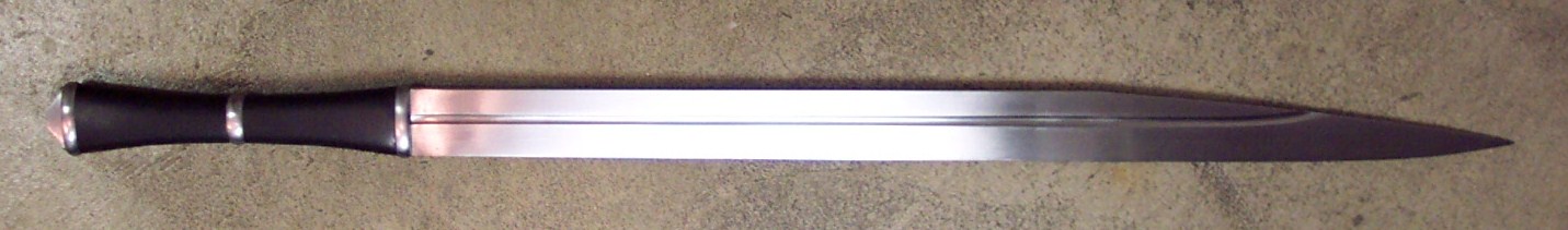 This seax can easily be used with two hands. I think a cut would be devastating if it were used this way. In one hand it feels great. It has a lot of follow through! Overall, it's a fantastic piece........The downloadable pic is a full length shot!