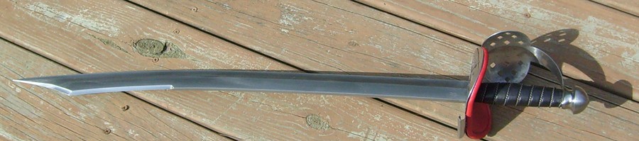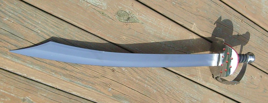 For Sale: Albion Cutlass. Don't know if this had a name, but I always thought of it as the "Pirate King". Only 5 or 6 were made, and I am the original owner of this one. Pierced steel guard and pommel, leather and wire wrap grip with padded leather guard piece. Blade is unsharpened! (can be sharpened I'm sure by Albion) No nicks dings or other problems. Sat on the wall. Here are the stats: from guard to tip blade measures 26 inches, 1-3/4 wide and 3/16 inches thick. Handle is 4-1/4 inches long. Overall length is 32 inches. Guard is 5 inches across. No scabard or sheath. Asking $800 with free shipping in the Continental US.