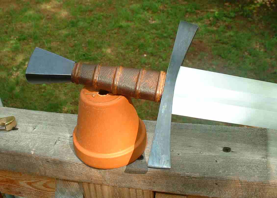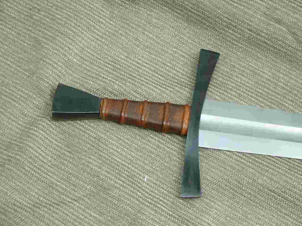 Sadly enough, I didn't get any pics of the completed sword before it shipped. I was anxious to get it out to you Gordon, but not because you were bugging me (which you weren't btw). I'm extremely pleased that you like it. As to being a shorter version of the Prince/Squire, yep the blades are very similar. Peter had given me some insights after getting a brief glance (though he didn't have time to document it) at the original this sword was based off of. Everything on this sword blade is +/- 2" shorter than the Albion Mark blade, this includes the fuller, although the hilt is only slightly shorter by 3/4" or so. The fuller shape as it blends off is also shaped quite a bit differently than the production sword. Again, I'm glad you are happy Gordon. |