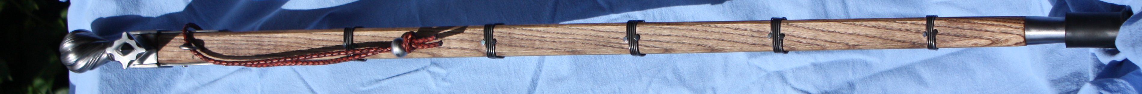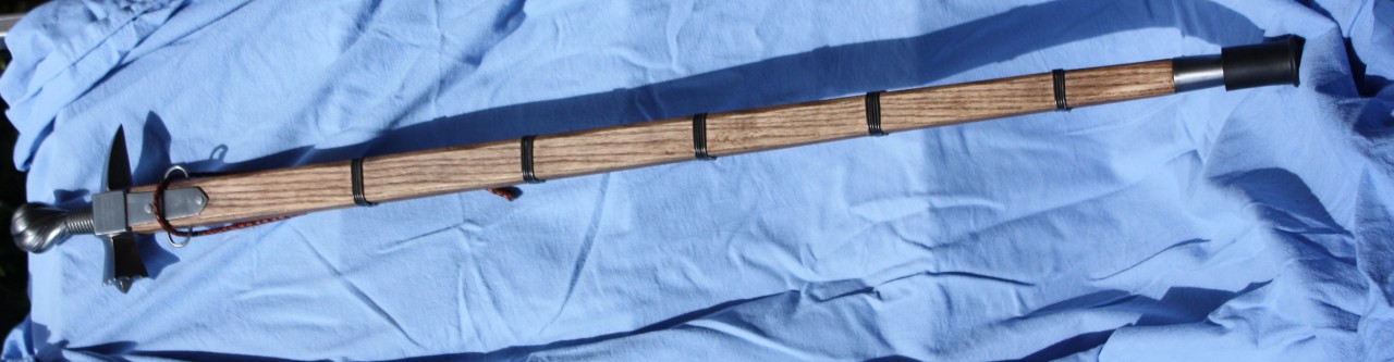 P.S: Oh... from a handling point of view ( I tried it in the garden) as a self defense weapon - hopefully it will never be needed. Its very comfortable in 2 hand use. With the left hand in the area of the first wire wrap above the rubber duck foot and the right about in the middle of the shaft the power generated in a determined blow would be fearsome. What really strieks out in this piece is the incredible ease of use. The weapon has more then enough heft for an encounter and is well controlabe even in the hands of an untrained person .