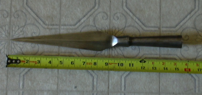 This is sold as a "Viking Spear" by MRL. I gave this one a mustard etch and then an over-polish to add some character and an aged look. The etch is not deep and there is no pitting so it could be removed easily. Otherwise it is in unused condition. I am selling the head only, unmounted. MRL is selling these for 36$, I will sell this for 26$ plus shipping. Prefer to send to U.S. buyers to avoid shipping complications. Paypal preferred, no 3% fee.